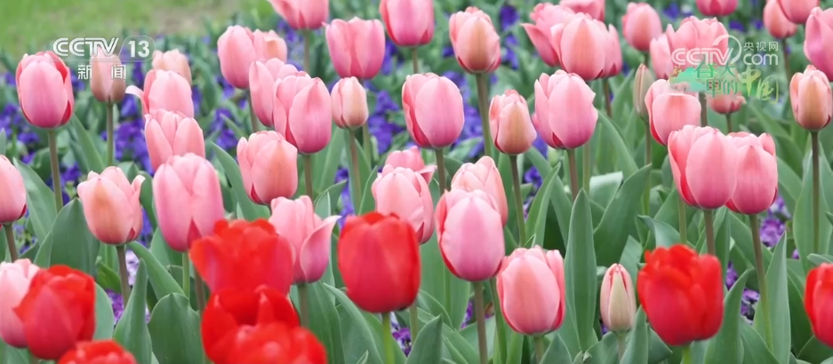 在江苏南京滨江公园里,除了“粉色印记”“皇家红”等经典品种,还有多款新品种首次亮相。为了延长观赏期,工作人员采用“草花+种球”栽植模式,科学搭配早、中、晚花期品种,实现了接续绽放。