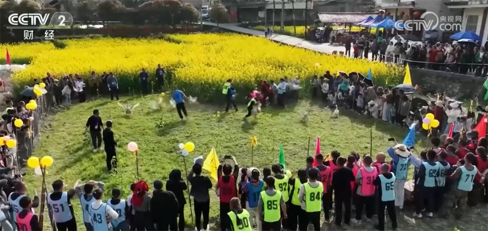在湖北咸丰县大路坝村,千亩油菜花竞相绽放,吸引游客前来打卡观光。依托连片花海景观,当地打造“春日嘉年华”活动,田埂变身热闹的农趣赛场,“抓大鹅”“捉兔子”等特色活动轮番上演。