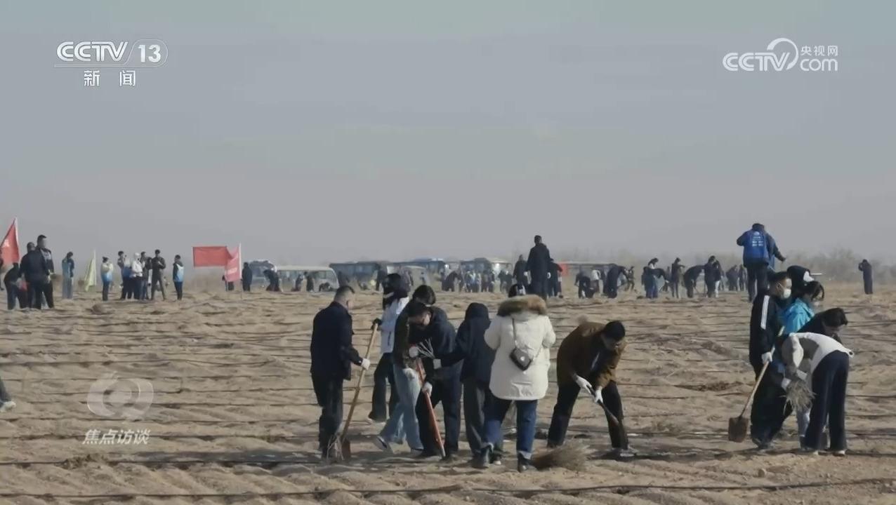 3月下旬,内蒙古巴彦淖尔市磴口县迎来了2026年首次全民义务植树活动,全县1000多名党员干部、青年志愿者,在乌兰布和沙漠生态治理区种下5万多株当地特色优良沙生灌木——四翅滨藜,共完成绿化面积400多亩。
