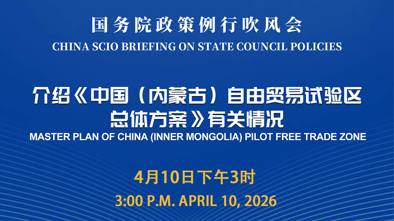 2026年4月10日(星期五)下午,国务院新闻办公室举行国务院政策例行吹风会,商务部部长助理袁晓明,内蒙古自治区党委常委、自治区常务副主席黄志强介绍《中国(内蒙古)自由贸易试验区总体方案》有关情况,并答记者问。