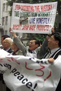 6月11日,日本基督教协会在东京组织集会,抗议日本文部科学省审议通过歪曲历史的教科书。来自韩国、中国、马来西亚、菲律宾和朝鲜等国家或地区的抗议者组成人链,将文部科学省大楼包围,表达对日本政府不顾历史事实、通过歪曲历史的教科书的愤怒之情。 (新华社)