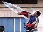 一名巴勒斯坦抗议者将以军发射的催泪弹扔回 |