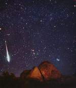 坦普尔-塔特尔(55p/Tempel-Tuttle)彗星沿椭圆轨道每33年环绕太阳一周,每次近日点都要与地球相对擦肩而过,彗星在近日点由于受太阳辐射较强,温度升高而使彗核活动加剧,喷射出较多的细小固体颗粒,高速进入地球大气并燃烧,形成了流星雨,由于辐射点位于狮子座而称之为狮子座流星。 |