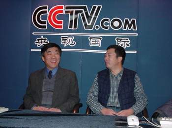 北京天文馆副馆长、高级工程师张学奎(右)和北京天文馆副研究员王宗良(左)作客央视国际 |
