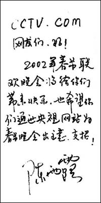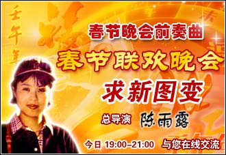 与历年晚会不同,今年晚会现场将首次出现网络主持人。目前,初步确定崔永元、王小丫担此重任。除夕之夜,他们将通过设在央视一号演播厅的央视国际网络,连接场内外。他们除了担当主持,还将与网民交流切磋,及时反馈各方信息。使晚会的空间在另一个层面上无限扩大,无限开放。
