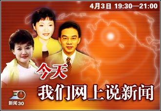 今天是个对《新闻30分》和所有关注新闻的人们不同寻常的日子,今天是《新闻30分》开播七周年的日子,今晚7点30分,《新闻30分》栏目的主持人胥午梅、郎永淳、梁艳将与您相约央视国际,回首难忘瞬间,细数幕后故事,听取观众意见,与您网上说新闻。 |