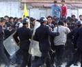 2002年3月24日,西安朱雀体育中心,陕西国力与青岛海牛队的甲A比赛才刚吹响终场哨,极富戏剧性的一幕就悄悄上演了,一名男青年从看台上跳下来,跑到场内,在这场比赛的主裁判周伟新没有防备的情况下,朝他脸上就是一拳。此时一些极度愤怒的球迷在看台上将报纸点燃发泄心中的不满,报纸引燃了看台的塑料座椅,赛场燃起大火,浓烟滚滚。而在主席台的西大门,黑压压的球迷,聚集着高喊“黑哨!黑哨!”球迷与警方的冲突就此开始。在双方的对峙中,警方三辆大巴的玻璃几乎被球迷全部砸光。最南边的一部也被球迷点燃,车厢内燃起熊熊大火。在这起事件中,裁判、球员及球迷都有不同程度的受伤。 |
