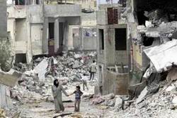 杰宁一度“人丁兴旺”,但是在以军连续多日的疯狂报复和巴勒斯坦武装人员的顽强抗争中,已经变成了一片焦土,到处是被以军坦克和武装直升机破坏的房屋和道路,随处可见的残垣断壁上则密密麻麻地布满了弹孔。最后一批顽强抵抗的巴勒斯坦武装人员在市中心留下了多具逐渐腐烂的尸体。以色列开始所谓的“清剿”巴勒斯坦武装分子行动后,这里的妇女和儿童完全处于一种与世隔绝的状态中,她们不得不在废墟和死人之间艰难地挣扎生存,甚至食用从街头水沟或者其他一些地方弄来的肮脏饮水。以军所到之处,经常能见到无可奈何的巴勒斯坦普通民众,呆呆地守望着自己那原本就没多少财产、现在更是一片瓦砺的破败家园。 |