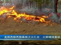 央视国际消息:美国亚利桑那州的两股森林大火在24号汇合,连成长达80公里的火线,形成该州历史上最严重的一次森林大火。