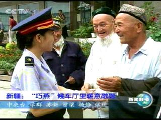 在乌鲁木齐火车南站有一个以普通客运员——欧阳巧燕的名字命名的巧燕候车厅,每天欧阳巧燕和她的同事们,都会以她们的爱心和热情主动为南来北往的旅客们解决他们各种各样的麻烦事。