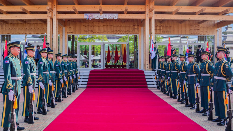当地时间11月1日下午,韩国总统李在明在韩国庆州举行欢迎仪式,隆重欢迎国家主席习近平对韩国进行国事访问。