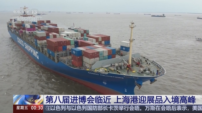第八届进博会临近 上海港迎展品入境高峰