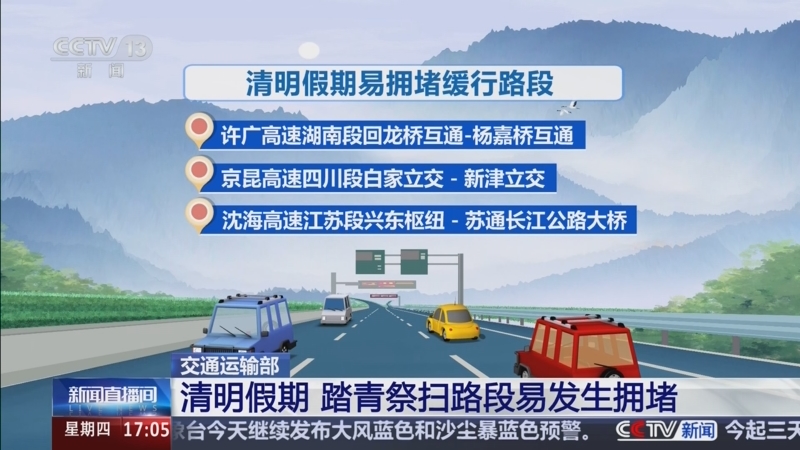交通运输部:清明假期 踏青祭扫路段易发生拥堵