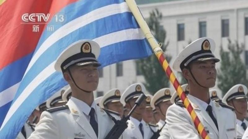 国旗护卫队:步伐铿锵有力 旗帜指引胜利方向