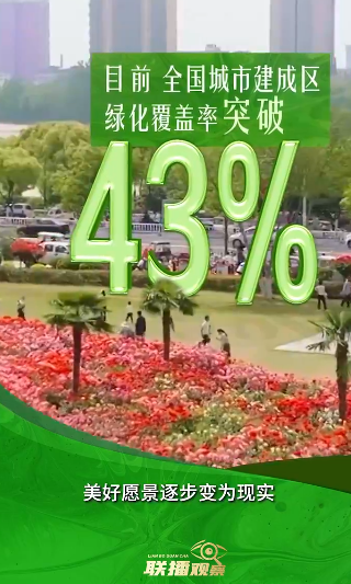 如今,全国城市建成区绿化覆盖率已突破43%,群众家门口的绿色获得感显著增强。